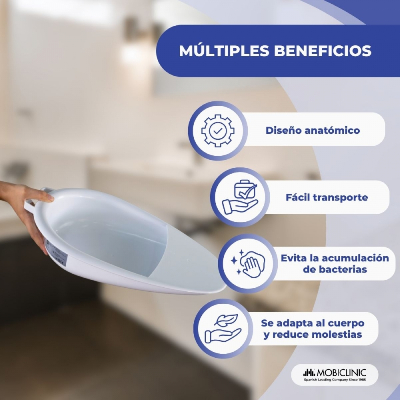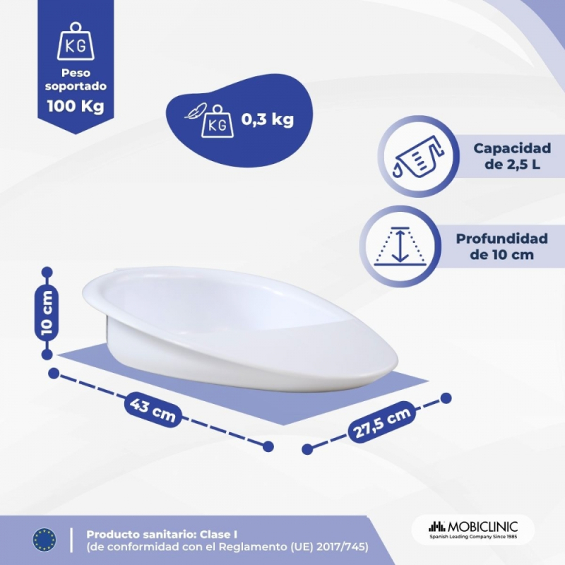 Cuña sanitaria | Capacidad 2500 ml | Ligera y Resistente | Anatómica | Uso doméstico y clínico | Seren | Mobiclinic