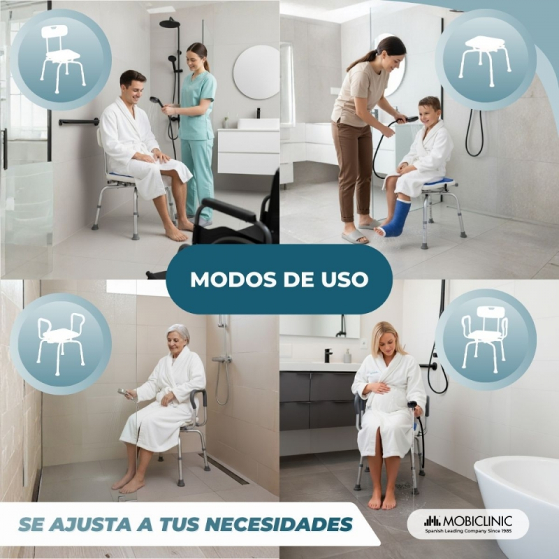 Banqueta de baño giratoria | Asiento 360º | Ajustable en altura | Apoyabrazos | Asiento EVA PAD | Akila | Mobiclinic Paula . Desde que la usamos, la ducha es más cómoda y segura. La rotación facilita el movimiento y el asiento EVA es más suave que otras banquetas que hemos probado. Muy recomendable. 29/10/2025 |