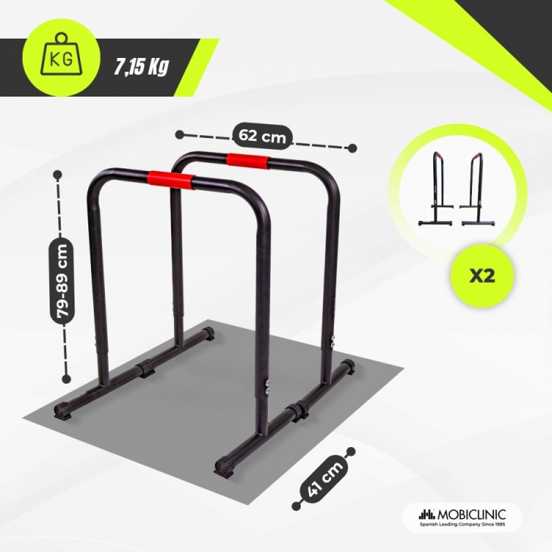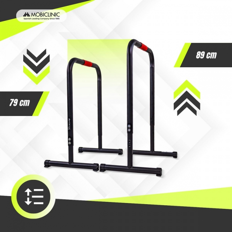 Barras paralelas | Ajustables 79-89 cm | Espuma antideslizante | Pies de goma | Acero | Twins | Mobiclinic
