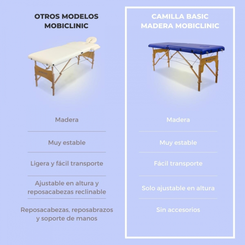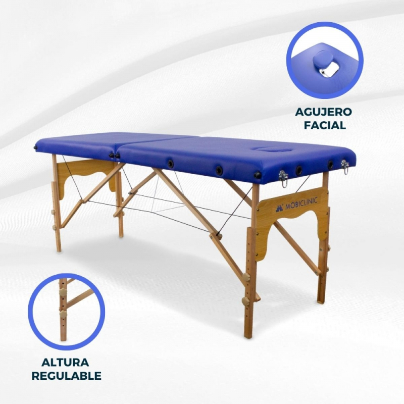 Camilla plegable | Madera | Portátil | 180x60 cm | Masaje | Azul | CM-01 BASIC | Mobiclinic
