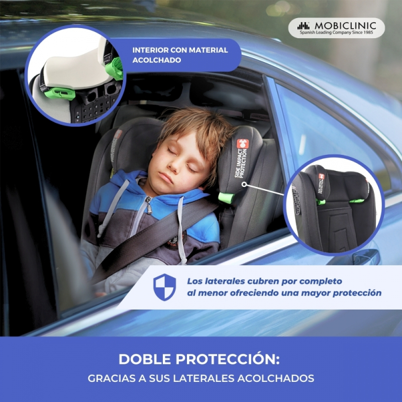 DOBLE PROTECCIÓN: La silla para niños Lionfix Max cuenta con dobles protecciones laterales acolchadas que cubren al menor por completo y lo protegen en caso de colisión.