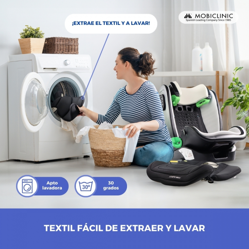 FÁCIL DE LIMPIAR: Todo el material textil de la silla Lionfix Max está fabricado en poliéster desenfundable y lavable, por lo que puede extraerse por completo para el lavado después de un uso prolongado.
