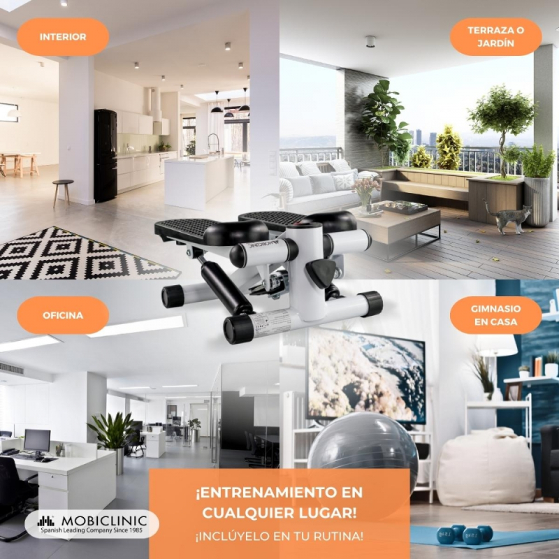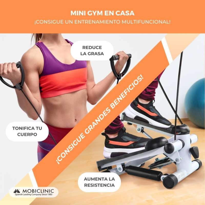 Máquina de steps | Bandas elásticas | Tonifica piernas y brazos | Pantalla LCD | Máx. 100 kg | Acero | StepPlus | Mobiclinic
