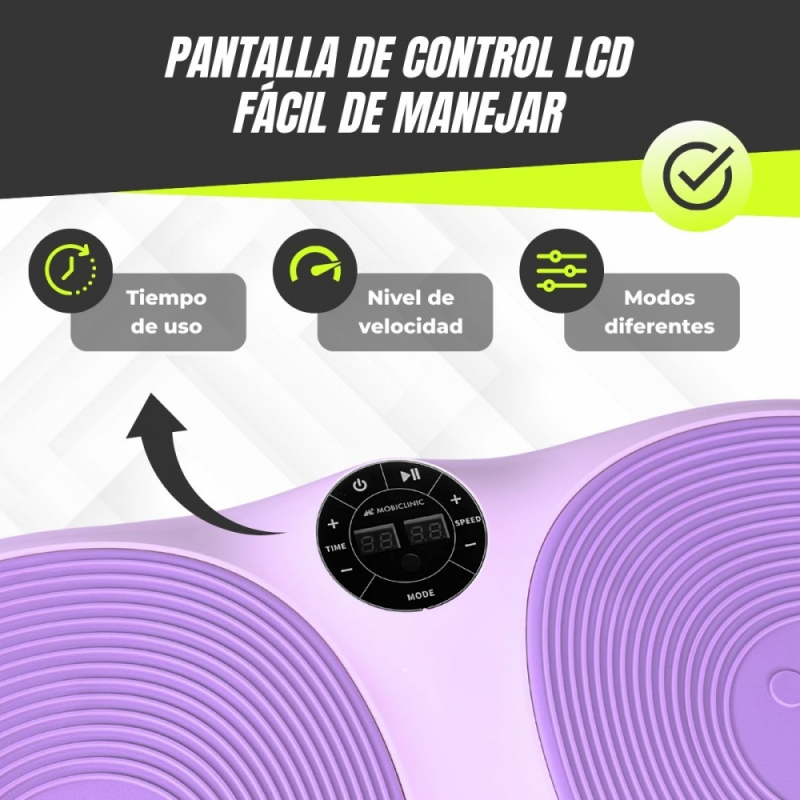 Plataforma vibratoria | 99 niveles de velocidad | 9 programas | Bandas elásticas | Pantalla y mando | Karol | Mobiclinic Claudia . Perfecta para sesiones rápidas pero efectivas. 16/02/2026 |