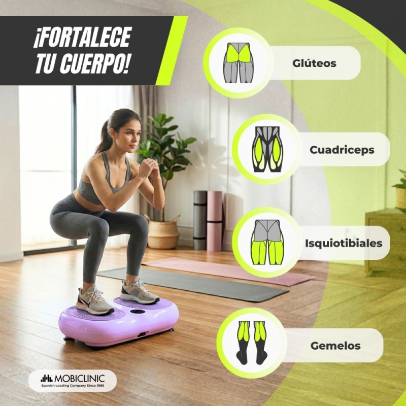 Plataforma vibratoria | 99 niveles de velocidad | 9 programas | Bandas elásticas | Pantalla y mando | Karol | Mobiclinic Rubén . Las bandas elásticas son un plus, puedes trabajar también brazos y hombros. 14/02/2026 |