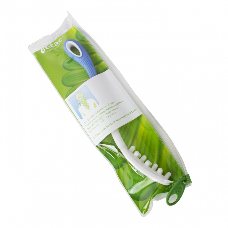 Diese Waschhilfe für Senioren erleichtert Personen mit Bewegungseinschränkungen die tägliche Haarpflege. Um nicht über lange Zeit die Hände über den Kopf halten zu müssen, können Sie stattdessen diese Bürste mit langem Stiel verwenden, um Shampoo aufzutragen und wiedeauszuwaschen. Die Form und die Länge ermöglichen es, diese Tätigkeit ohne viel Anstrengung und gründlich auszuführen zu können. Außerdem fühlt sich das Haare waschen mit den kleinen, dicken Borsten der Bürste an, wie eine angenehme Kopfmassage.