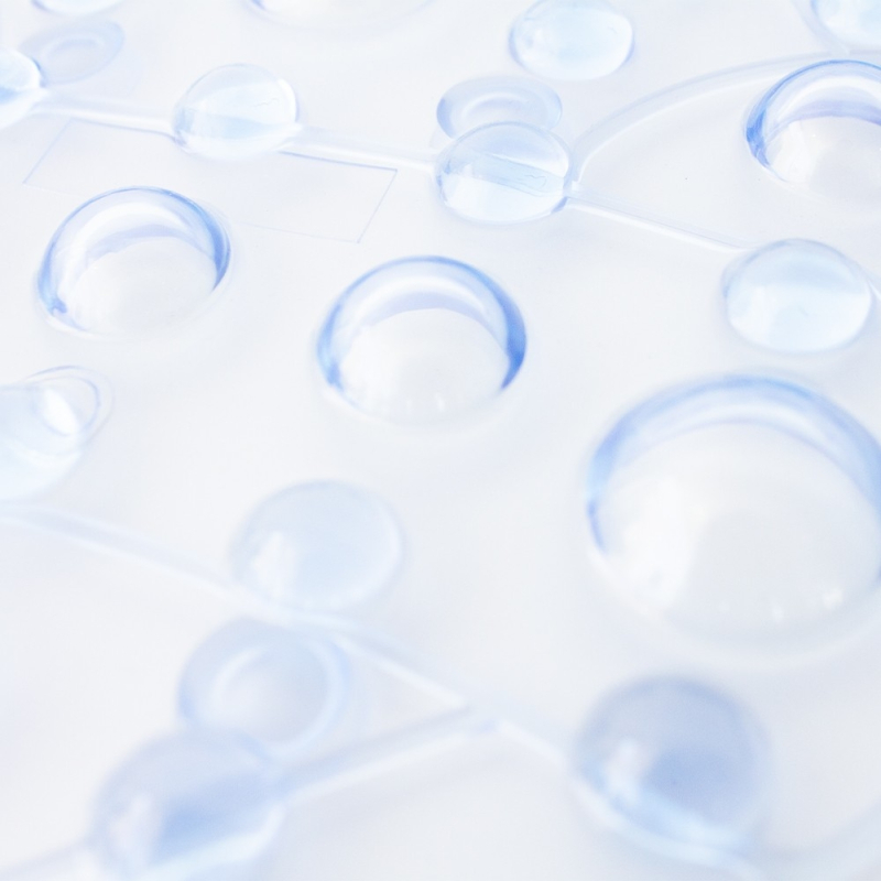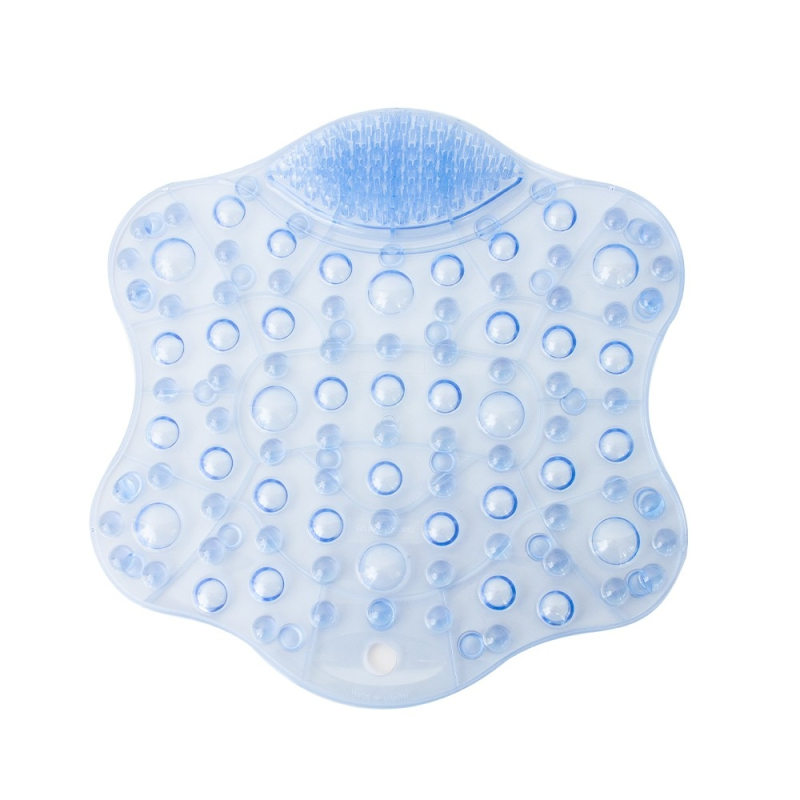 Das Material dieser Duschmatte ist rutschfest: Sie besteht aus PVC und hat Saugnäpfe, die Ausrutschen und Stürze verhindern. Darüber hinaus kann sie mit einer einzigartigen Zusatzausstattung punkten: die flexiblen Halbkugeln auf der Oberfläche und die weiche Bürste auf der Vorderseite rufen ein Gefühl der Entspannung wie bei einer Massage hervor.