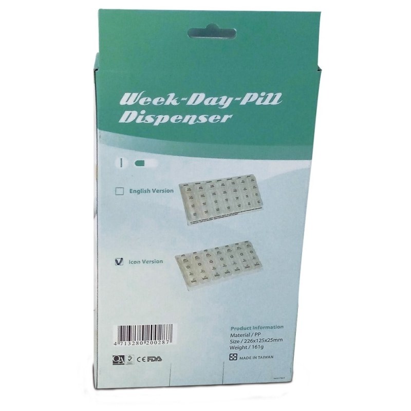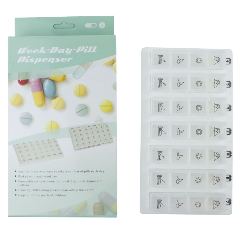Diese praktische wöchentliche Medikamentenbox beinhaltet sieben individueller Behälter, eine für jeden Wochentag. Es ist perfekt für Personen, die verschiedene Medikamentendose einnehmen müssen und, dass es kontrollieren brauchen. Sie werden nie mehr seine Medikamente mit dieser Medikamentendosierer vergessen!