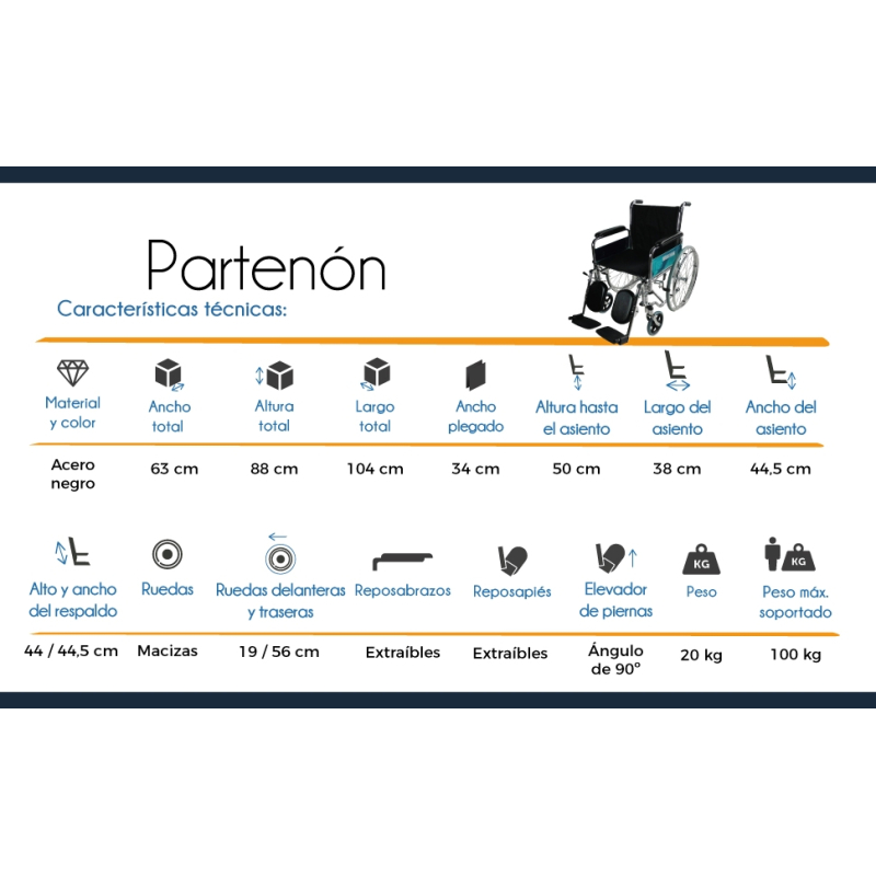 Der Partenón-Rollstuhl ist ein Synonym für Robustheit und Design. Es handelt sich um einen manuellen Stuhl, der sowohl Komfort und Sicherheit als auch den Komfort der Begleitperson gewährleistet.