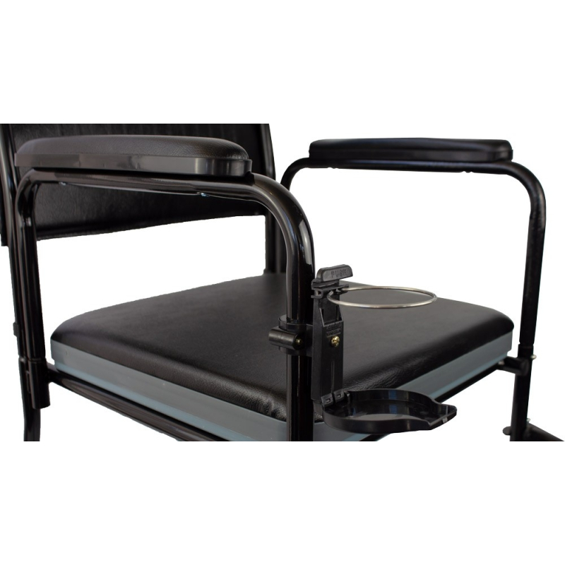Dieser Getränkehalter für Rollstühle ist auf der Unterseite mit einem kleinen Tablett versehen und hat oben einen Haltering. Er wurde entwickelt, um alle Arten von Bechern und Flaschen sicher und zuverlässig zu halten. Er passt sich leicht an das Fahrgestell von Rollstühlen an und kann bei Nichtgebrauch zusammengeklappt werden. Ein tolles Rollstuhl Zubehör!