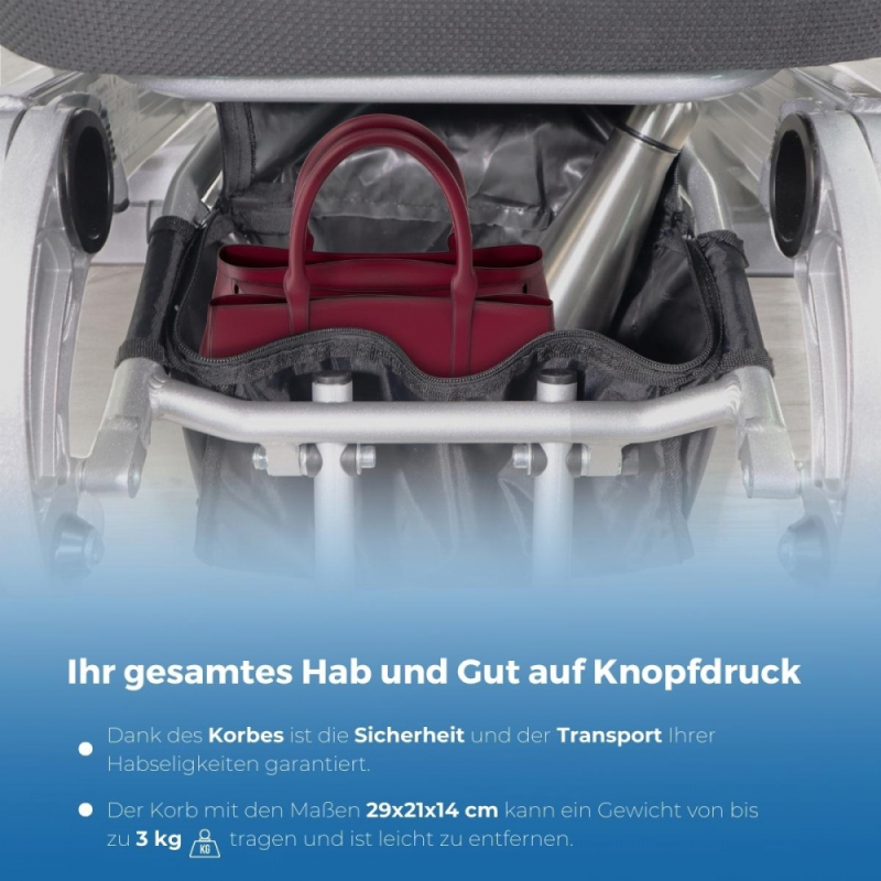 FÜR VERSCHIEDENE BENUTZER ZUGÄNGLICH: Dieser Elektrorollstuhl wiegt ohne Batterien 24,8 kg, mit Batterien beträgt sein Gesamtgewicht 36 kg. Dieses Modell kann außerdem ein Maximalgewicht von bis zu 120 kg tragen.