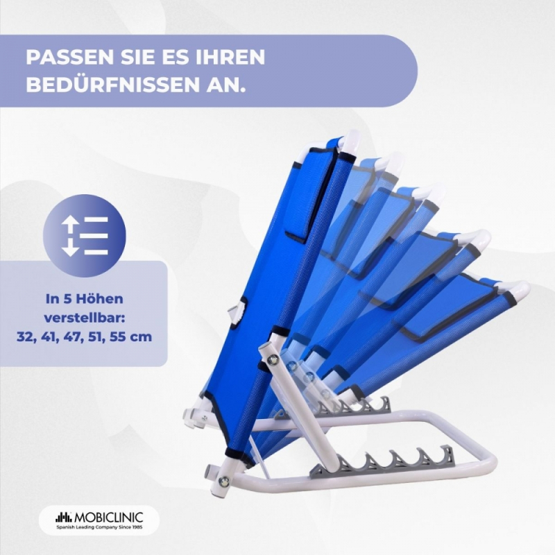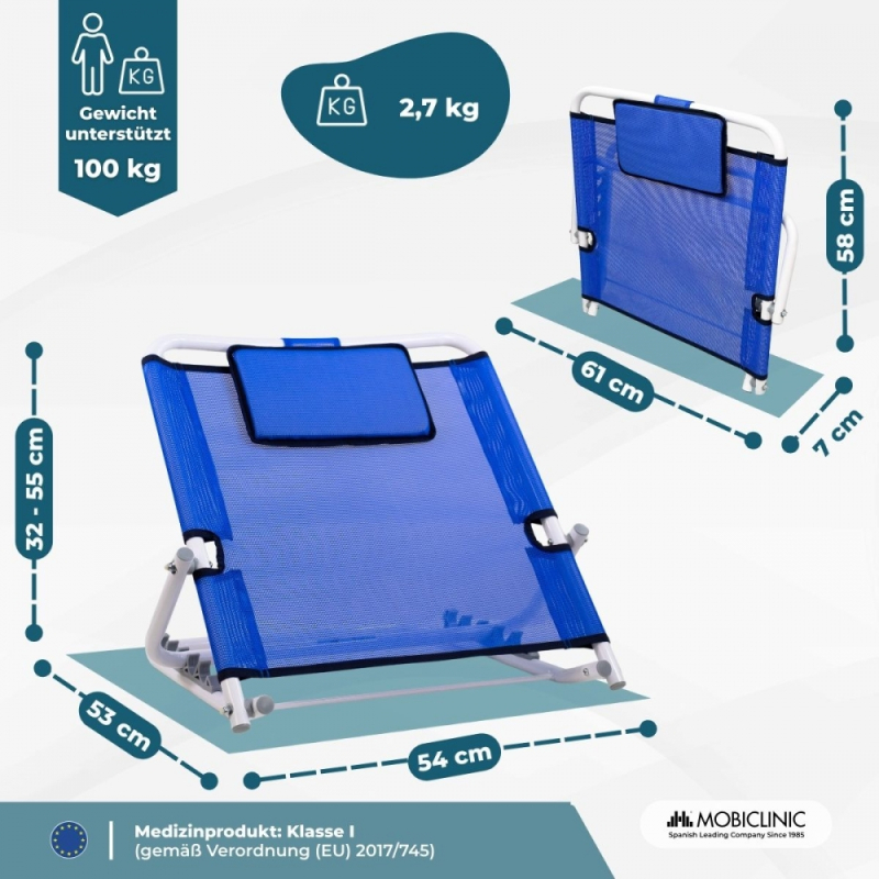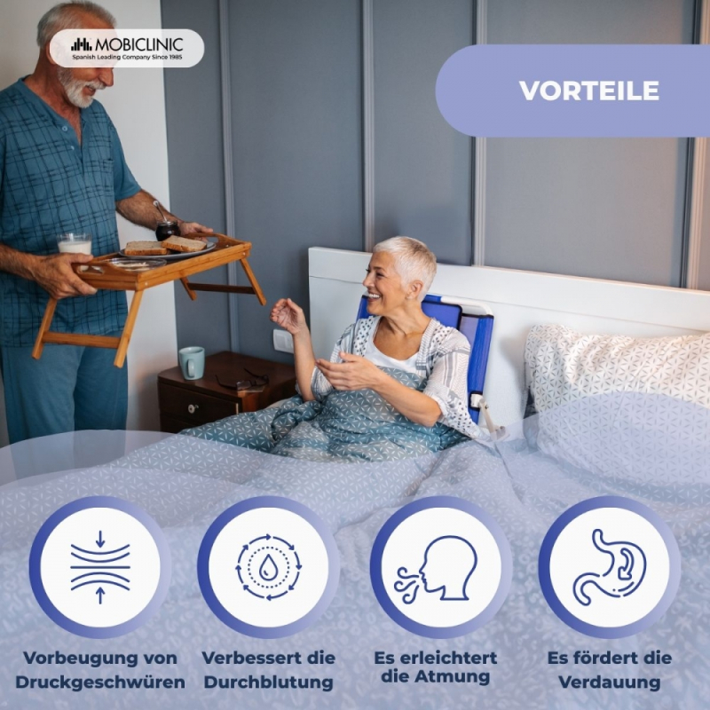 Es handelt sich dabei um einen verstellbaren Rückeneinbau, der eine Neigung von 45º bis 60º bietet und es somit bettlägerigen Menschen ermöglicht, ihren täglichen Aktivitäten nachzugehen.