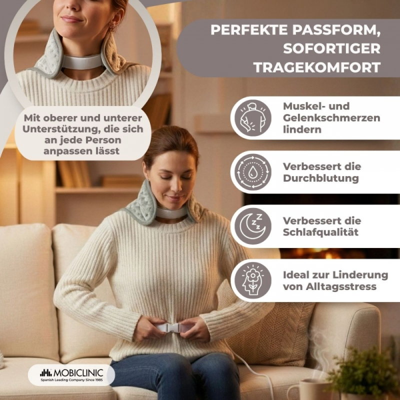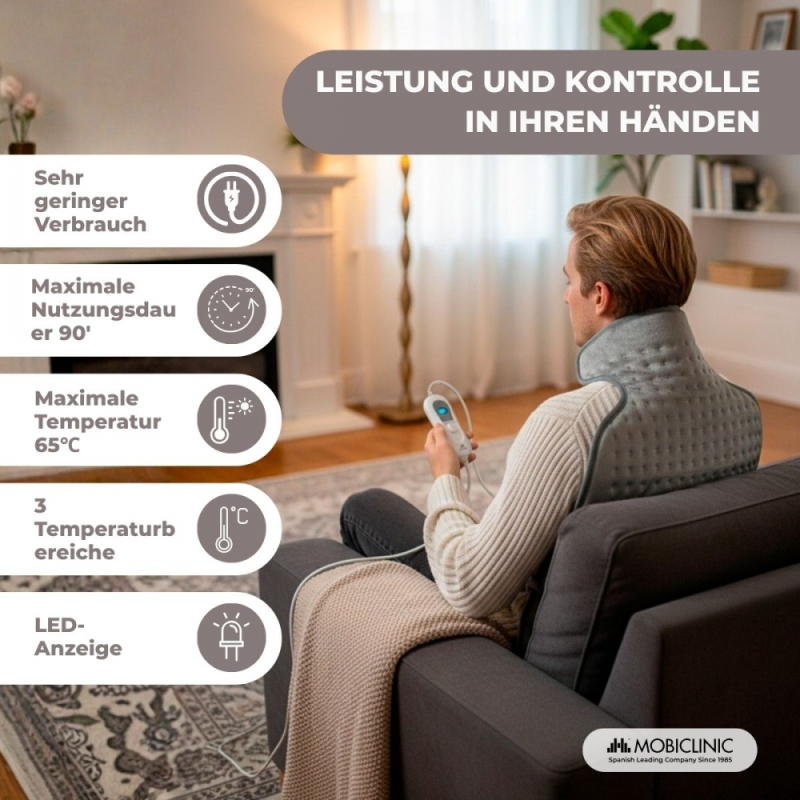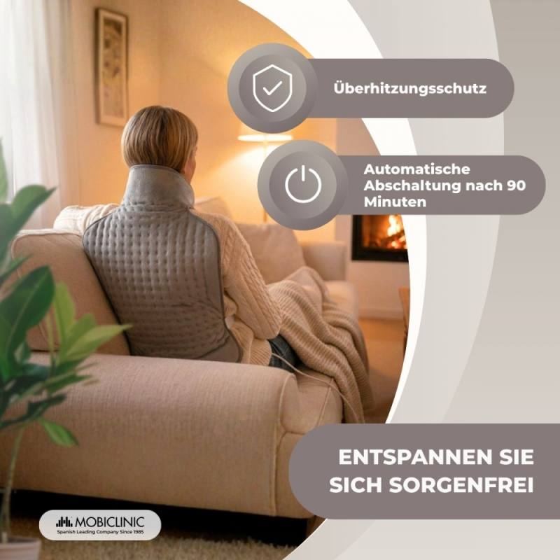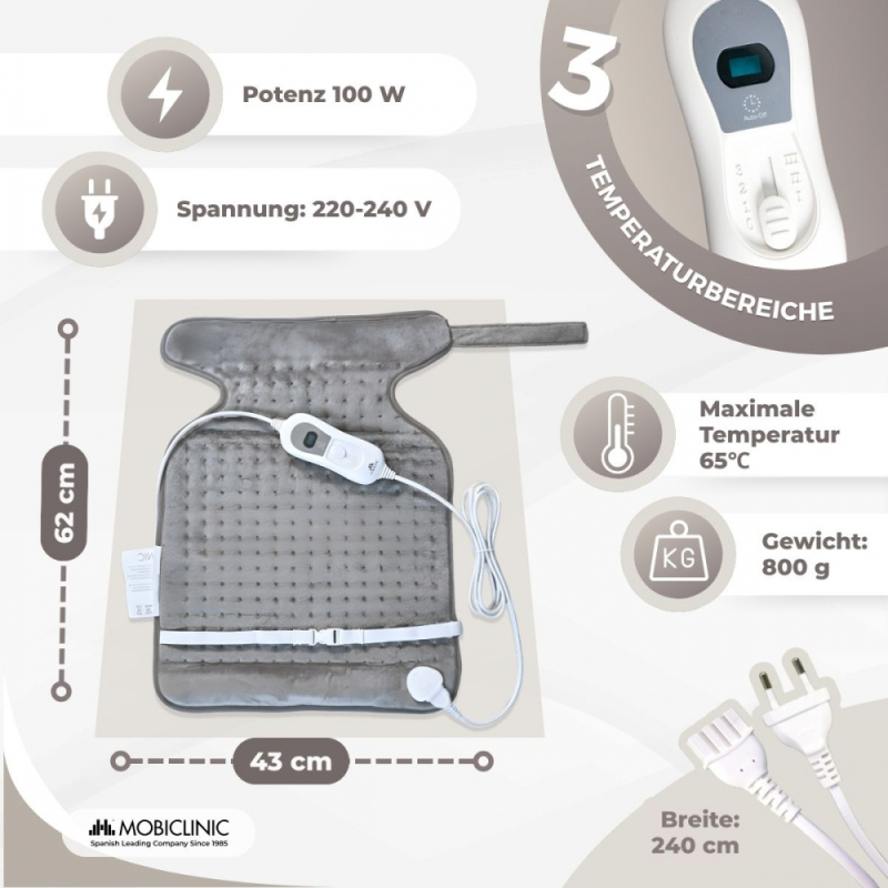Rücken- und Nacken-Heizkissen | 62x43 cm | 3 Temperaturstufen | Abschaltautomatik | Mobiclinic