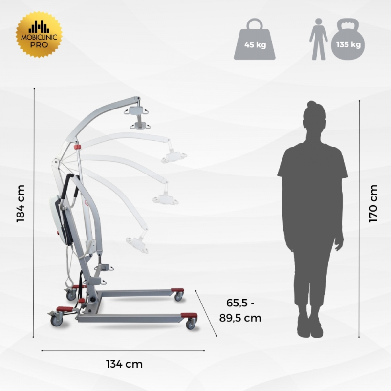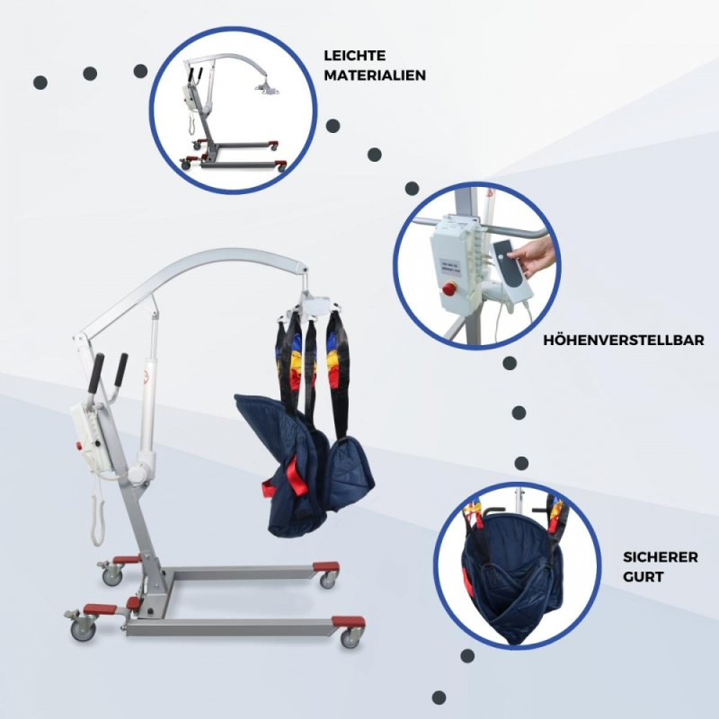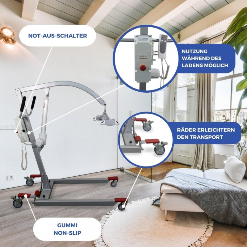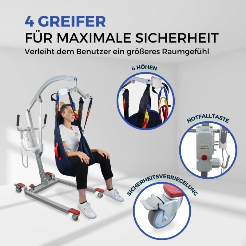 Elektrokran | Inkl. 4-Haken-Gurt | Einsatz beim Laden | Compact | Max. 180 kg | Fortuna Basic | Mobiclinic