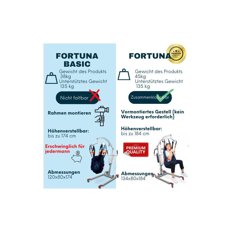 Der elektrische Lifter Fortuna Basic Mobiclinic ermöglicht den sicheren Transfer eines Patienten vom Rollstuhl auf ein Sofa, Bett oder umgekehrt. Er reduziert den körperlichen Aufwand für die Patientenbewegung und achtet besonders auf die körperliche Gesundheit des Pflegepersonals. Dieses Modell verhindert vor allem: