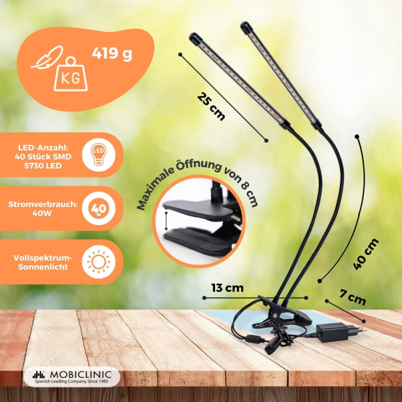 Lámpara de cultivo | LED | 3 modos | 6000K| Negro| Temporizador | 10 niveles de brillo | Giro 360º | Growflex x2| Mobiclinic Victor . Un producto de 10 05/11/2023 |