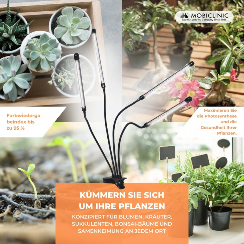 Pflanzenlampe | LED | 3 Modi | 6000K| Schwarz| Timer | 10 Helligkeitsstufen | 360º Drehung | Growflex | Mobiclinic