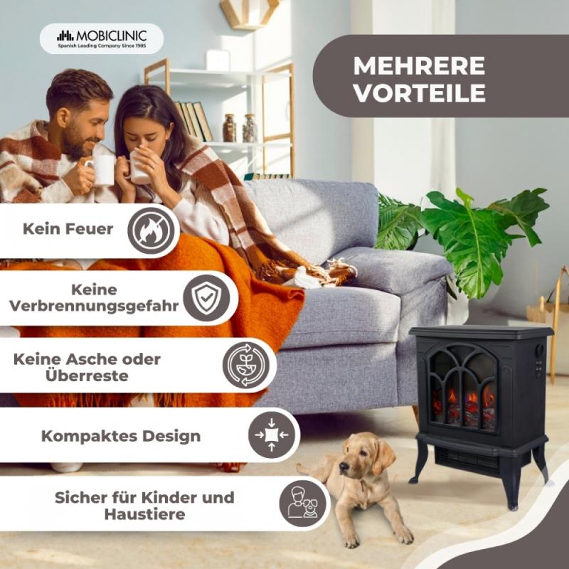 Elektrokamin | 1800 W | 3D-Flamme| Überhitzungsschutz | Einstellbare Temperatur | Dekorativ | Wut | Mobiclinic
