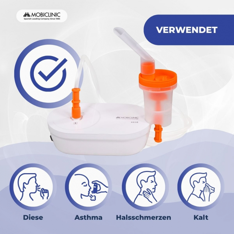 Druckluftvernebler | 2 Masken + Mundstück | Leise | USB | Tragbar und leicht | Nebumobi2 | Mobiclinic