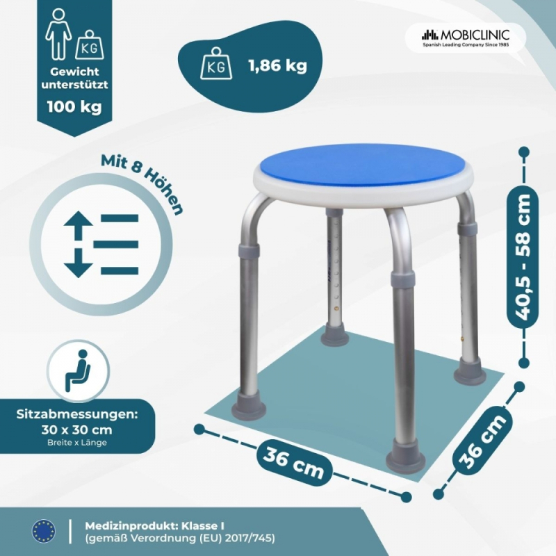 Badhocker | Höhenverstellbar | Max. 100 kg | Rutschfeste EVA-Füße und -Oberfläche | Foco | Mobiclinic