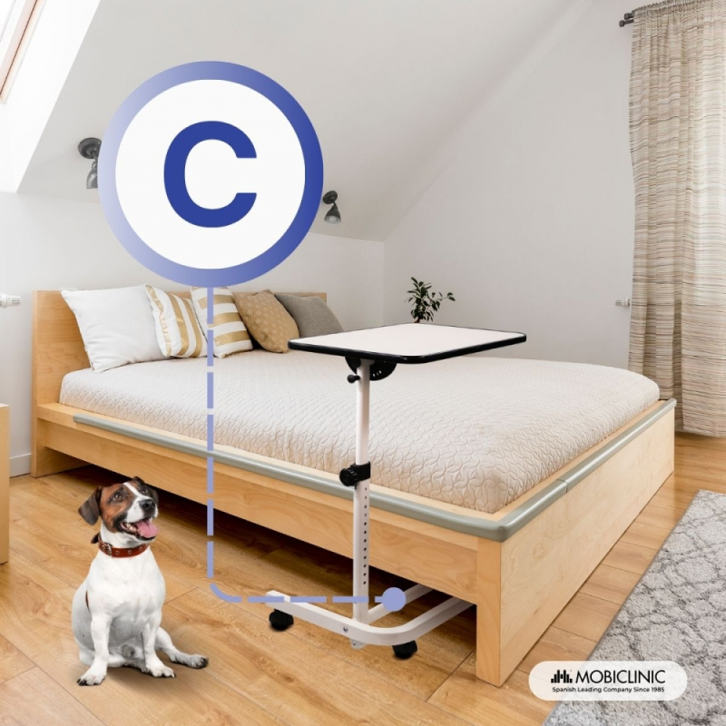 Mesa auxiliar ajustable | 9 alturas | Tablero con inclinación | Plegable | Ruedas con freno | Base en C | Cumbre | Mobiclinic Irene . Diseño cómodo y moderno. La base en forma de C facilita colocarla cerca del sillón o la cama sin molestias. 06/10/2025 |