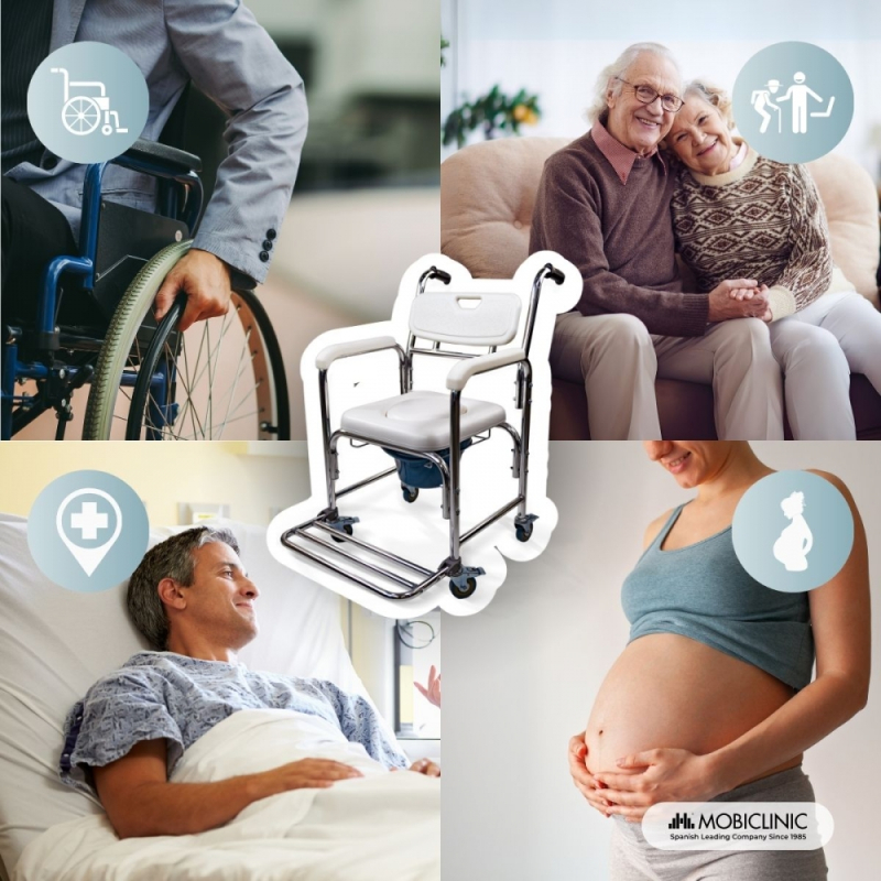 WC-Sitz mit Toilettenstuhl | 4,3-L Toilettenstuhl | Fußstütze und Armlehnen | Räder mit Bremsen | Rope | Mobiclinic