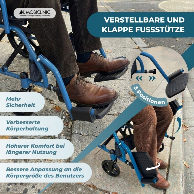 PRAKTISCHE UND FUNKTIONALE FUSSSTÜTZEN: Die faltbaren und geräumigen Fußstützen sind leicht zugänglich und platzsparend zu verstauen und bieten eine bequeme Beinposition. Sie verfügen über Fußschlaufen, die Stabilität und Sicherheit auf Reisen gewährleisten.