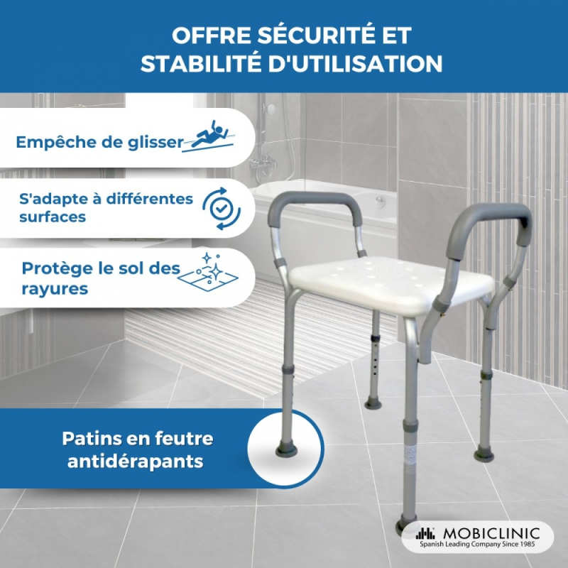 Chaise de douche | Réglable en hauteur | Avec accoudoirs et pieds antidérapants | Acueducto | Mobiclinic