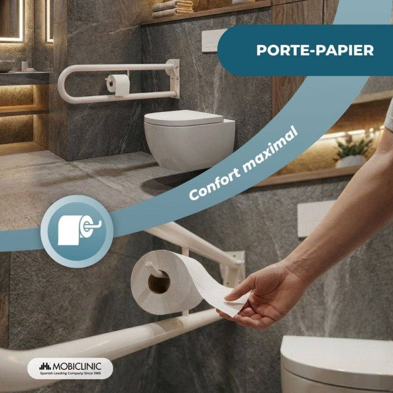 Double barre de sécurité pour salle de bain | Pliable avec porte-papier | Arco