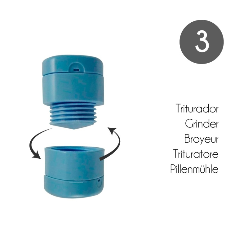 Il est très utile parce que, cette boîte à pilules 3 en 1 à une extrémité, a un petit réservoir dans lequel stocker les pilules. Au centre, il peut être dévissé pour servir de broyeur, ce qui permet de réduire facilement les comprimés en poussière, et à l'autre extrémité, il apporte une petite lame qui peut couper le comprimé sans aucune difficulté ou effort.