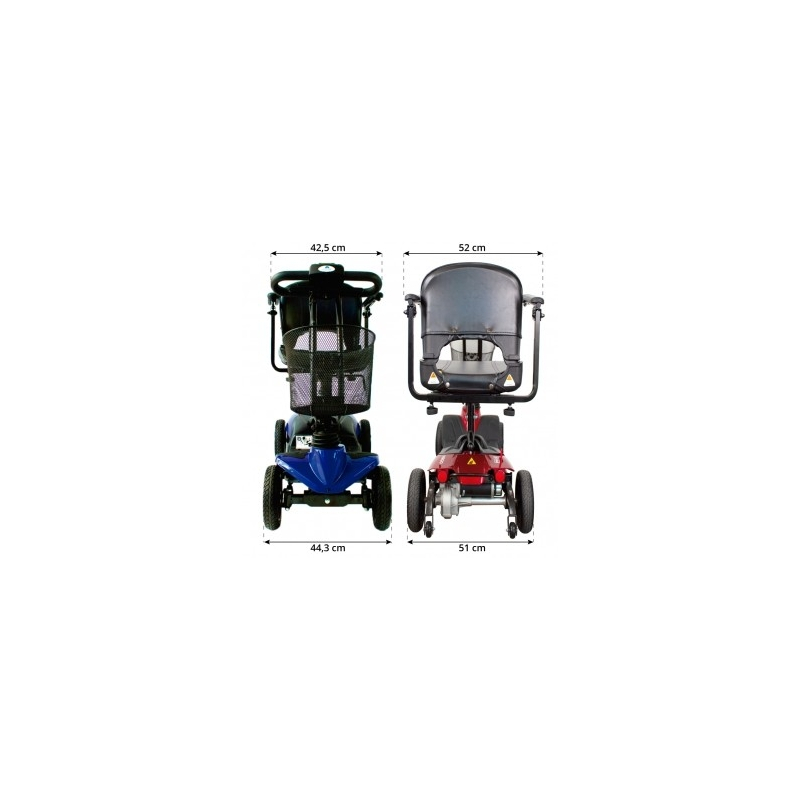 POIDS LÉGER - Le poids total de ce scooter handicapé (y compris les deux batteries) est de 40 kg et il est capable de supporter un poids maximum de 115 kg. Chaque batterie pèse 9,2 kg.
