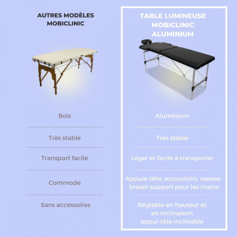 Son design : le mélange d’aluminium et de similicuir apporte une touche distinguée à votre clinique.
