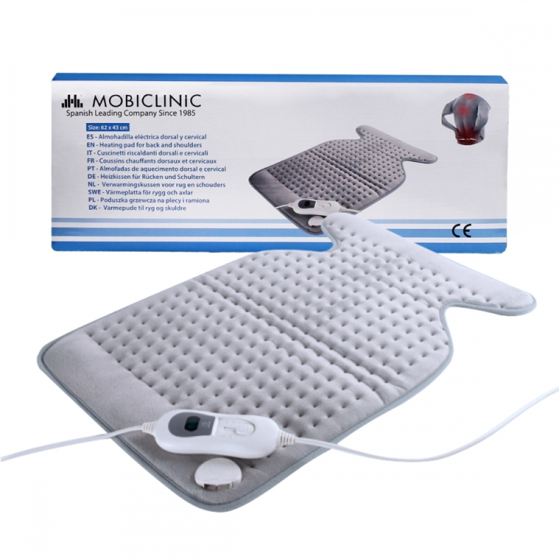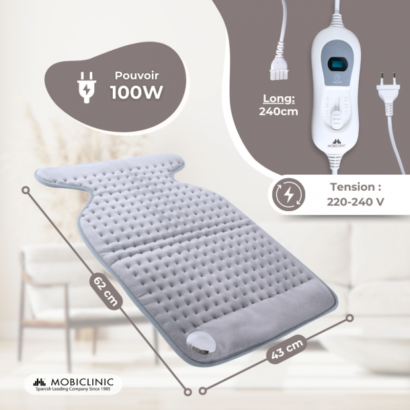Coussin chauffant pour le dos et la nuque | 62x43 cm | 3 niveaux de chaleur | Arrêt automatique | Mobiclinic