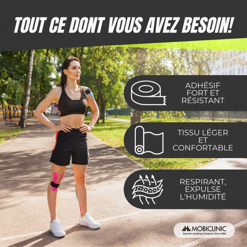 Les blessures telles que les entorses de la cheville, les œdèmes, les épicondylites ou les fasciites plantaires peuvent être rapidement soulagées grâce à ces bandes de kinésiologie qui améliorent la contraction du muscle affaibli.