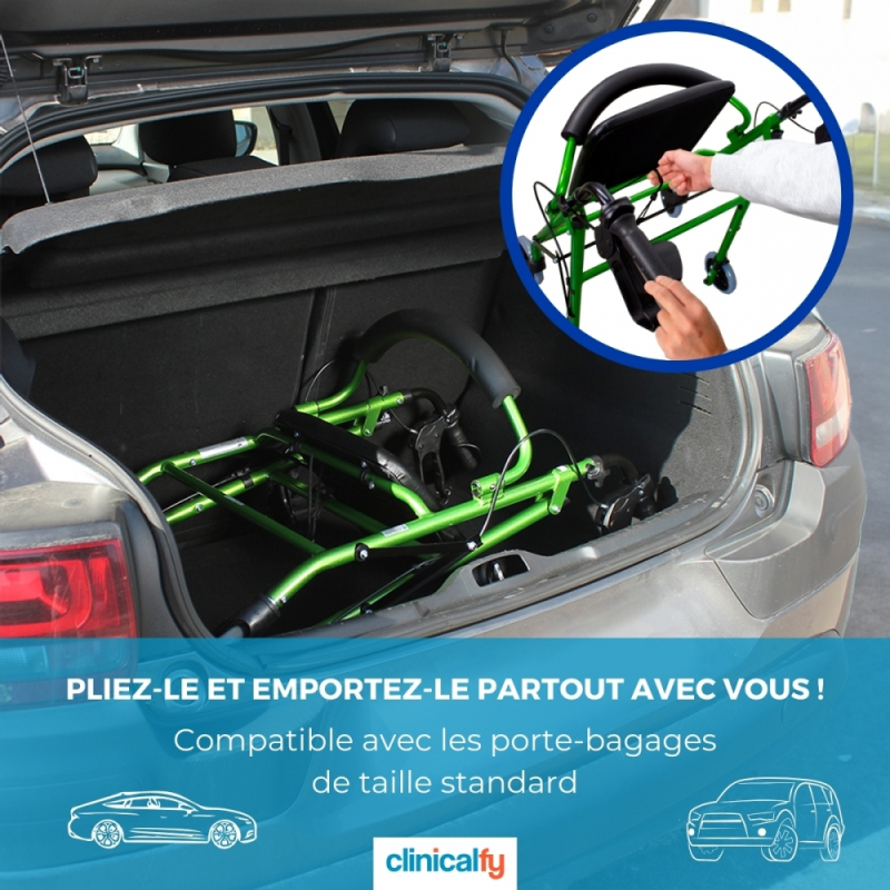 Déambulateur orthopédique | Pliable | Freins à poignée | 4 roues | Siège et dossier | TURIA | Clinicalfy