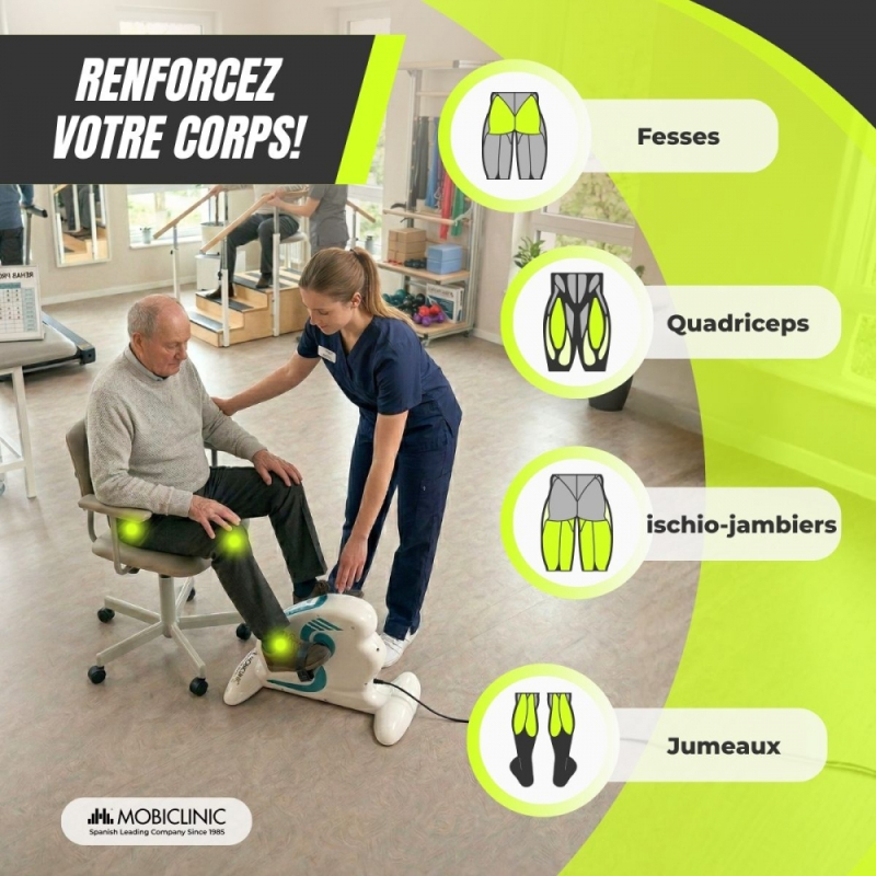 IDÉAL POUR : Les personnes qui ont besoin de rééducation, qui n'ont pas le temps de faire de l'exercice ou qui ont des problèmes cardiovasculaires ou articulaires