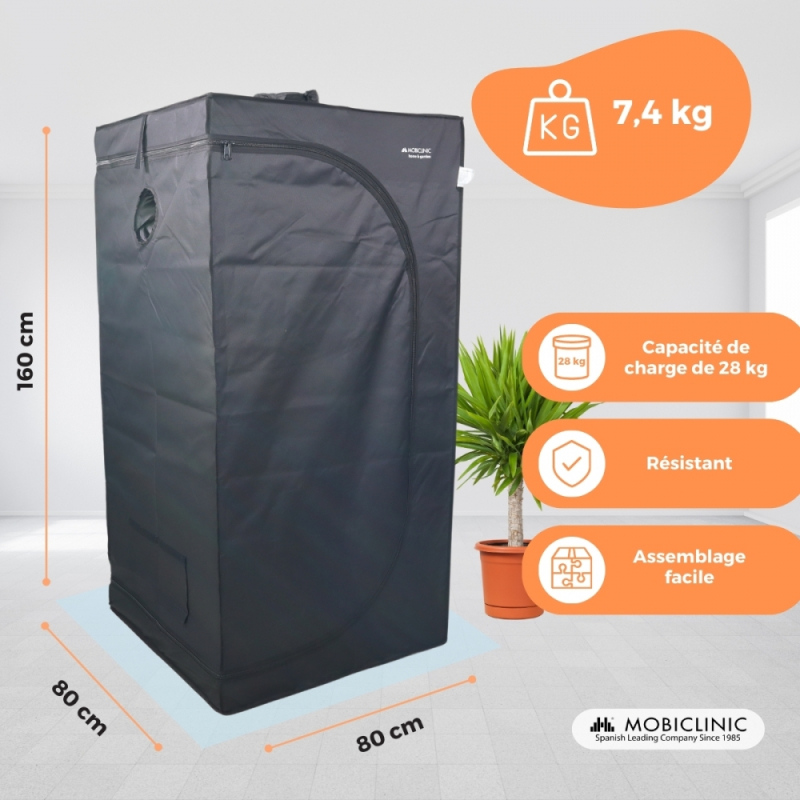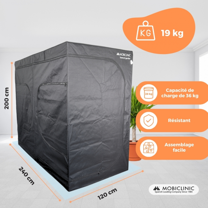 Tente de culture | Étanche | Noir| Nylon | Charge maximale 28 kg | Fond amovible | Barres de maintien |Growbox | Mobiclinic