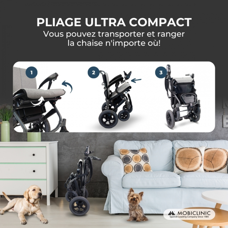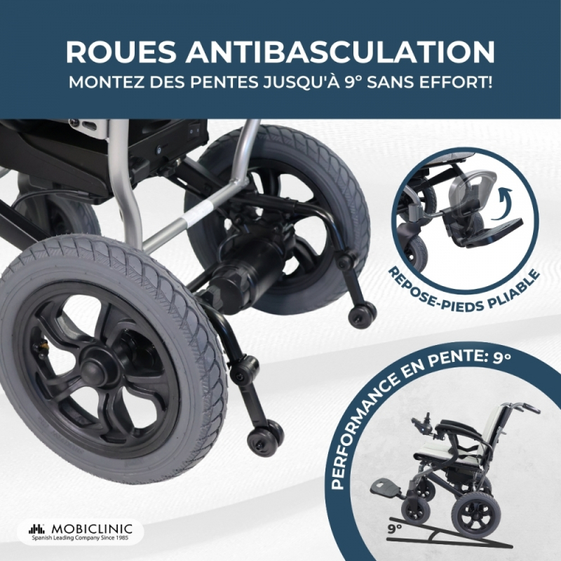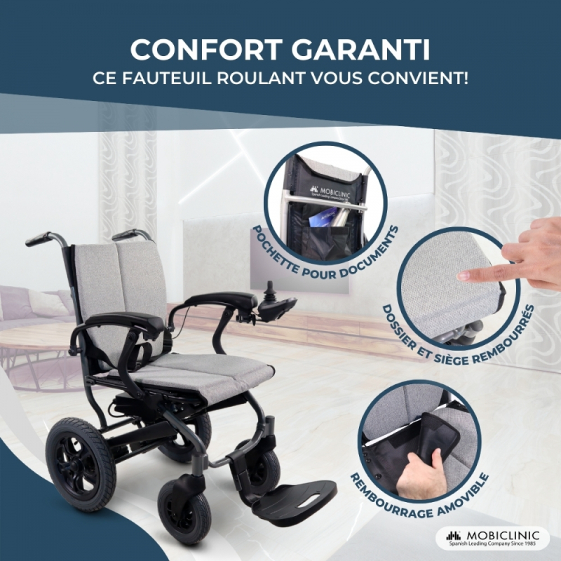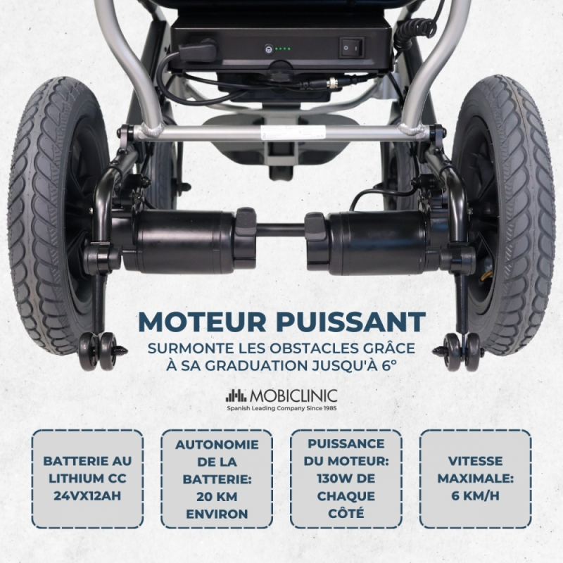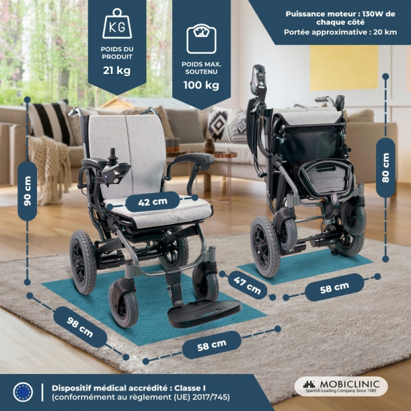 Fauteuil roulant électrique | Pliable | Aluminium | Double mode | Autonomie de 20 km | Jusqu'à 100 kg | Verona | Mobiclinic