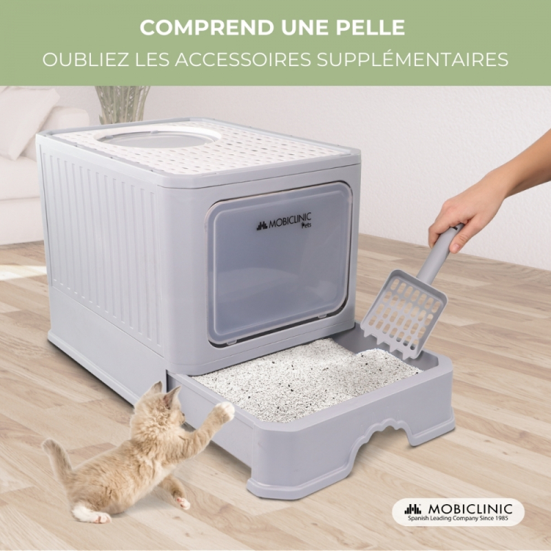 Bac à litière pour chat | Fermé | Comprend une pelle | Grande capacité | Plateau extensible et amovible | CatBox | Mobiclinic