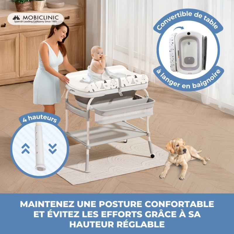 Bain à langer|3 en 1|Pliable|Hauteur réglable|Roues avec frein|Contrôle de la température|Tendance|Mobiclinic