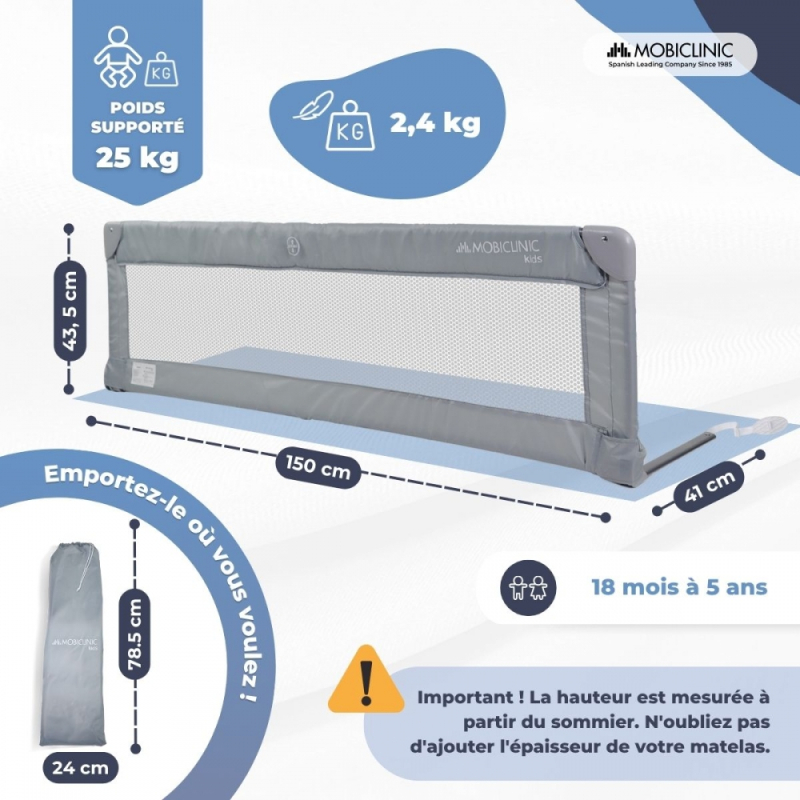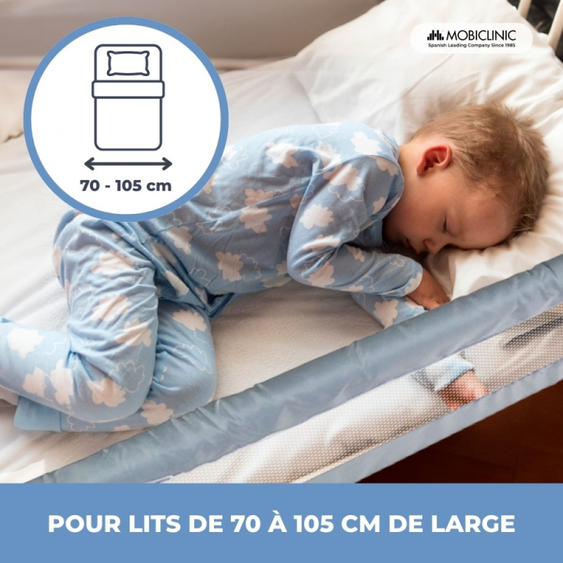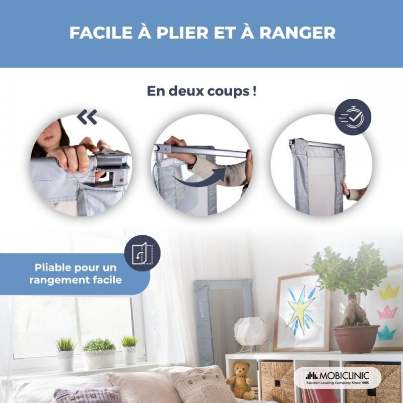 Barrière de lit | Pliable | Transportable | Double fixation | 150cm | Sûr | Poids max 25kg | Dreamy | Mobiclinic