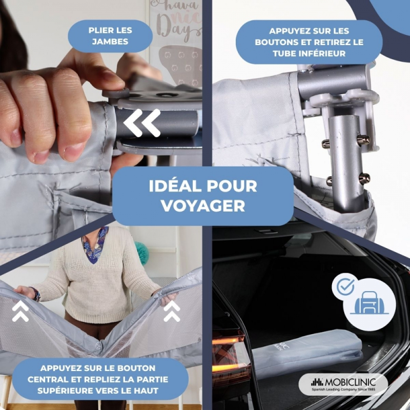 Livraison estimée :Livré en 60 jours ouvrables Retour : 30 jours pour le retour pour défaut Garantie: 2 ansPLIABLE ET TRANSPORTABLE : Conçue pour votre confort, cette barrière est pliable et livrée avec un sac de transport, la rendant encore plus pratique à transporter et facile à utiliser en déplacement. Pratique et légère !