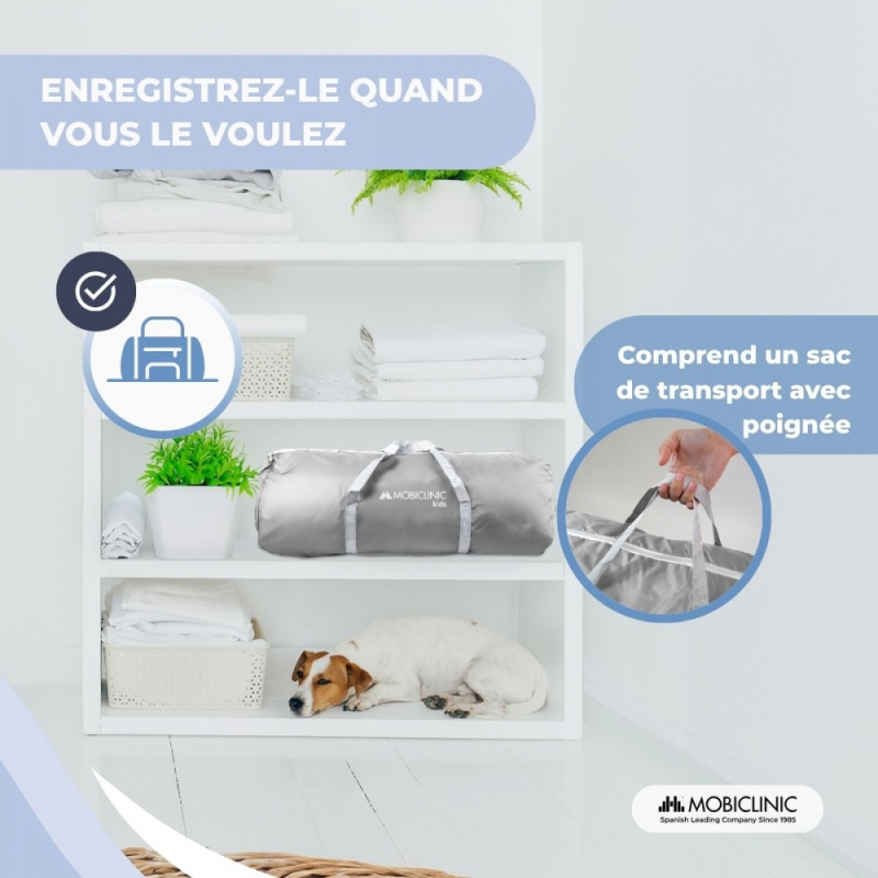 TRANSPORTABLE : Ce parc est facile et intuitif à monter et à démonter, ce qui permet de le déplacer d'une pièce à l'autre ou d'un espace à l'autre grâce à son sac de transport. Il est fabriqué en polyester, fer et polypropylène respectueux de l'environnement, sans danger pour les bébés.