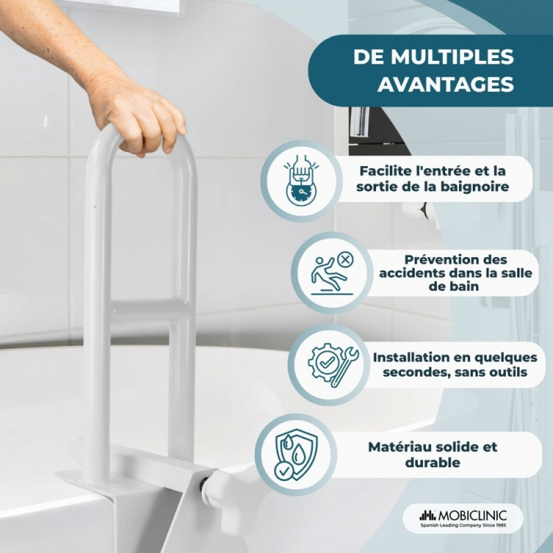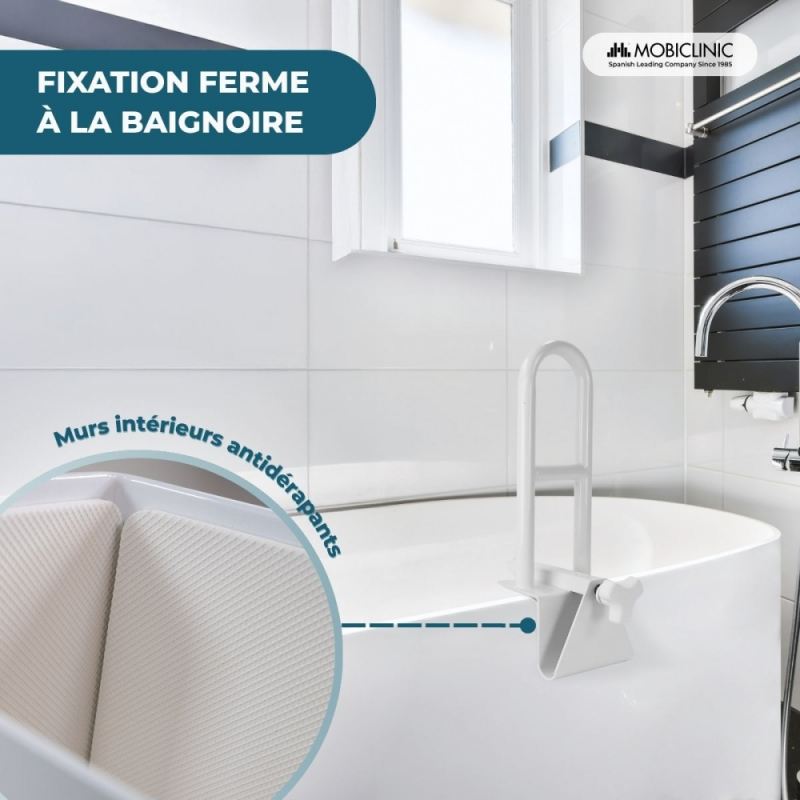 Poignée d'accès à la baignoire | Bords lisses 4,5 - 13,5 cm | Max. 100kg | Usage clinique et domestique | MobiBary | Mobiclinic