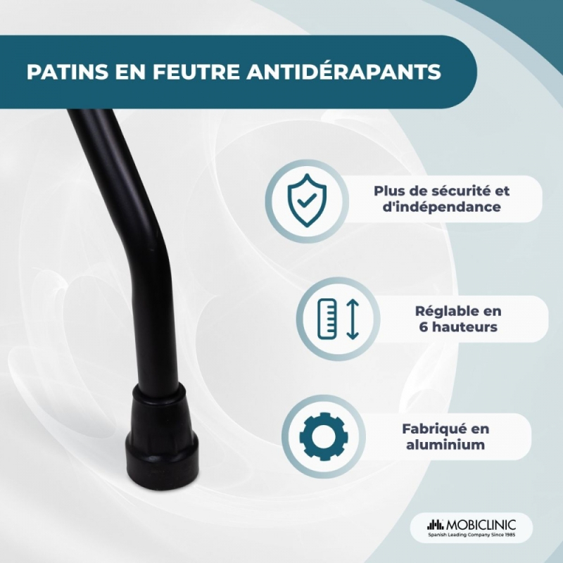 De plus, étant un déambulateur pliable, il se plie facilement grâce à son axe central. Son design noir confère à ce déambulateur pour seniors l'élégance qu'ils ont toujours recherchée.
