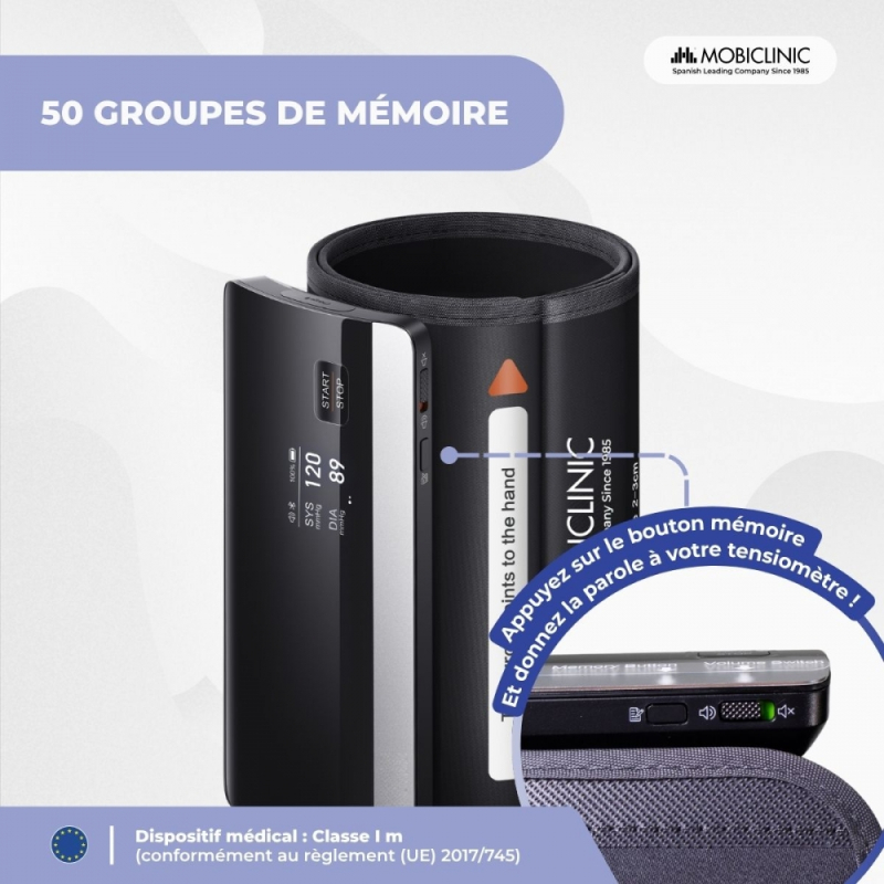 Tensiomètre au bras | Bluetooth et APP | Guidage vocal | Mémoire | Détection d'erreur | USB | Cardiomed | Mobiclinic