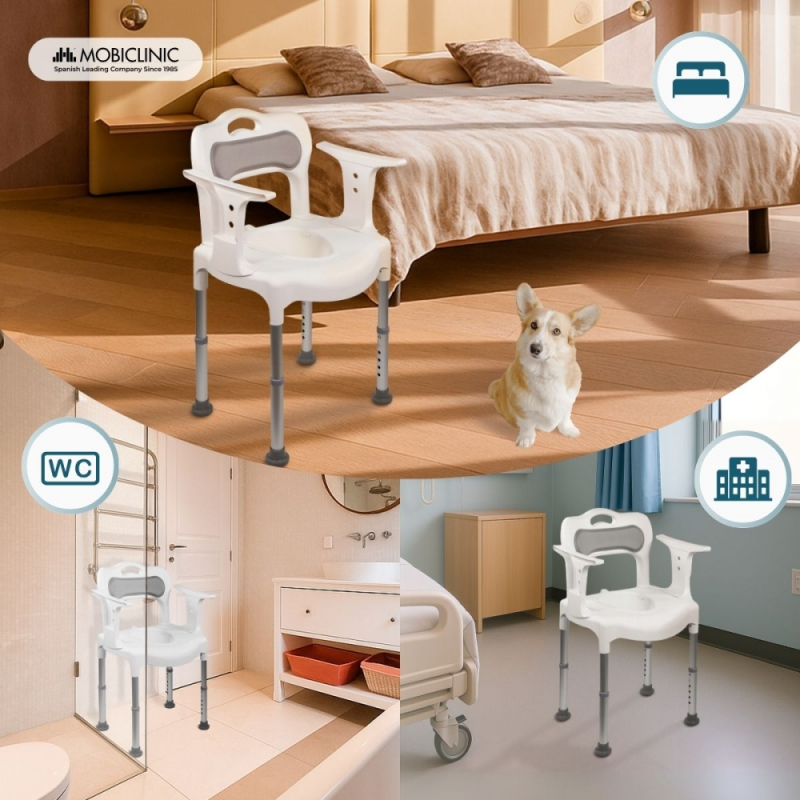 Chaise percée | Hauteur réglable | Siège et dossier rembourrés | Antidérapant | 3500 ml | Guido | Mobiclinic