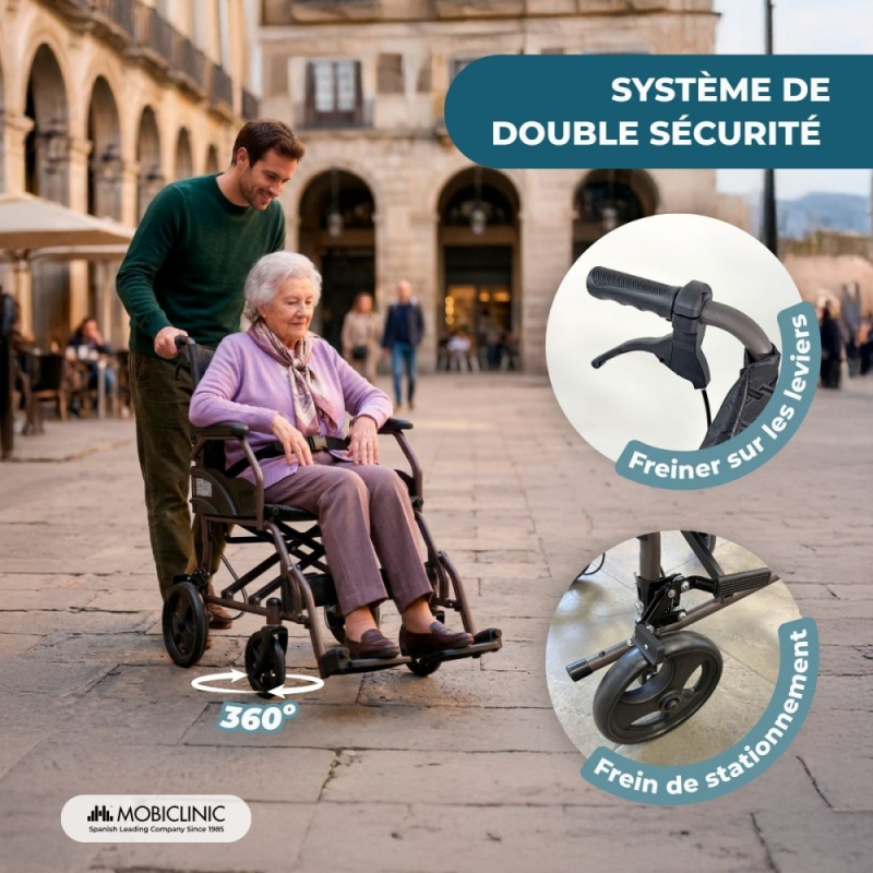 Fauteuil roulant pliable | Dossier et repose-pieds pliables | Léger | Jusqu'à 100 kg | Double freins | Kefren | Mobiclinic