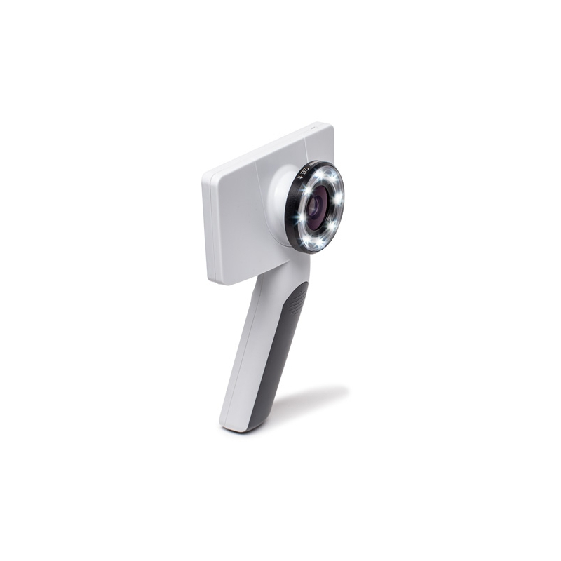 Cet appareil est doté d'un écran tactile permettant de prendre des photos et des vidéos rapidement et facilement. La caméra produit des images haute résolution agrandissables, avec des grossissements de 2x à 6x en mode otoscope et de 2x à 8x en mode dermatoscope , et intègre également un zoom numérique . Son design ergonomique permet une utilisation à une main, la mise au point et l'intensité lumineuse étant réglables via une molette rotative, ce qui contribue également à réduire les risques de contamination croisée.