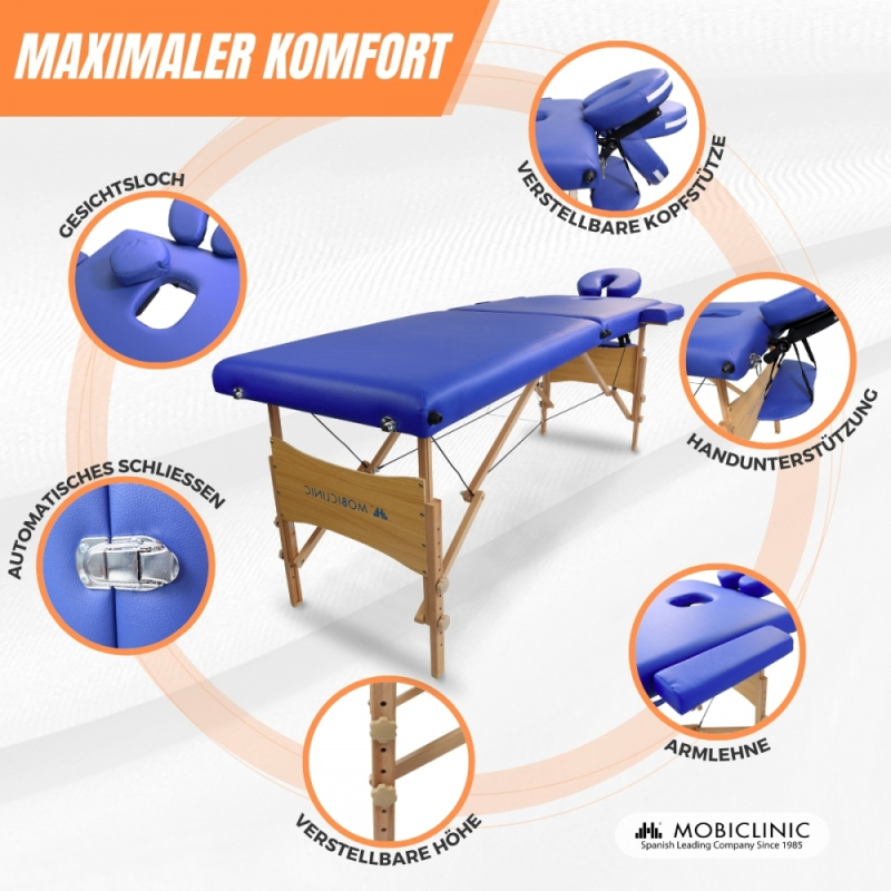 Massageliege klappbar | Kopfstütze | Tragbar | Holz | 186 x 60 cm | Blau | CM-01 LIGHT | Mobiclinic
